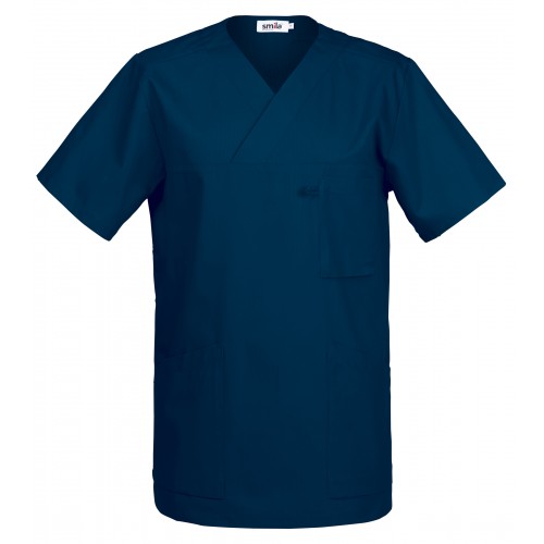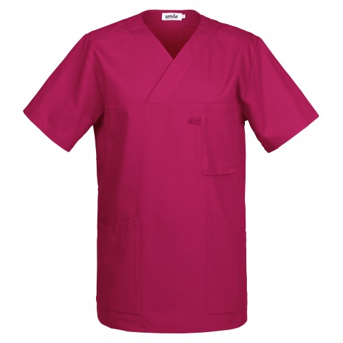 V-aukkoinen unisex-tunika. Suora ja mukava malli. Edessä tilavat päällitaskut, joista toisessa avainpidike. Rintataskussa korttipidike. Tilava malli, jossa on kokojen välillä tavallista suurempi ero. Takapituus 74 cm koossa M.