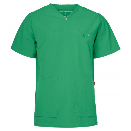 V-aukkoinen unisex-tunika. Suora ja mukava malli. Tilavat päällitaskut, joissa molemmissa sisällä tasku. Toinen näistä on kännykkätasku, jossa avainpidike. Rintataskussa rengas painonappi ja korttipidike. Sivulla säädettävä napillinen kuminauha, jolla malli säädettävissä vartalonmyötäisemmäksi. Tilava malli, jossa on kokojen välillä tavallista suurempi ero. Takapituus 74 cm koossa M.