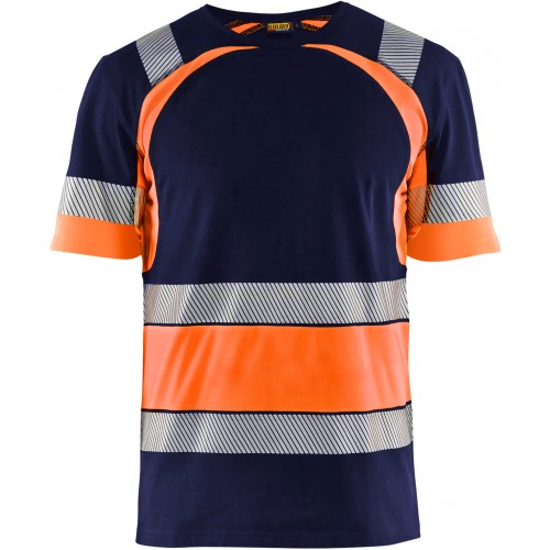 Moderni, pehmeä ja mukava puuvillainen t-paita. Tummat alueet on 100% puuvilla ja heijastavat alueet 100% polyesteriä. Huomiovärinen kangas on kosteutta siirtävää materiaalia anti-odor-ominaisuudella. Pyöreä pääntie ja vahvistettu niskasauma. Katkonaiset ja joustavat heijastimet lisäävät hengittävyyttä ja liikkuvuutta. Sertifioitu EN ISO 20471, luokka 1 mukaan. Väri 9955 musta/punainen 53,50€.