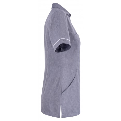 Istuva pusero, jossa kavennettu vyötärö. Naisellinen pääntie, jossa kaulus ja terenauha. Sivulla tilavat taskut, joissa avain-/korttipidike ja kaunis rintatasku. Normaalipituiset hihat, joissa hihansuissa käänne. Takapituus 76 cm koossa M.